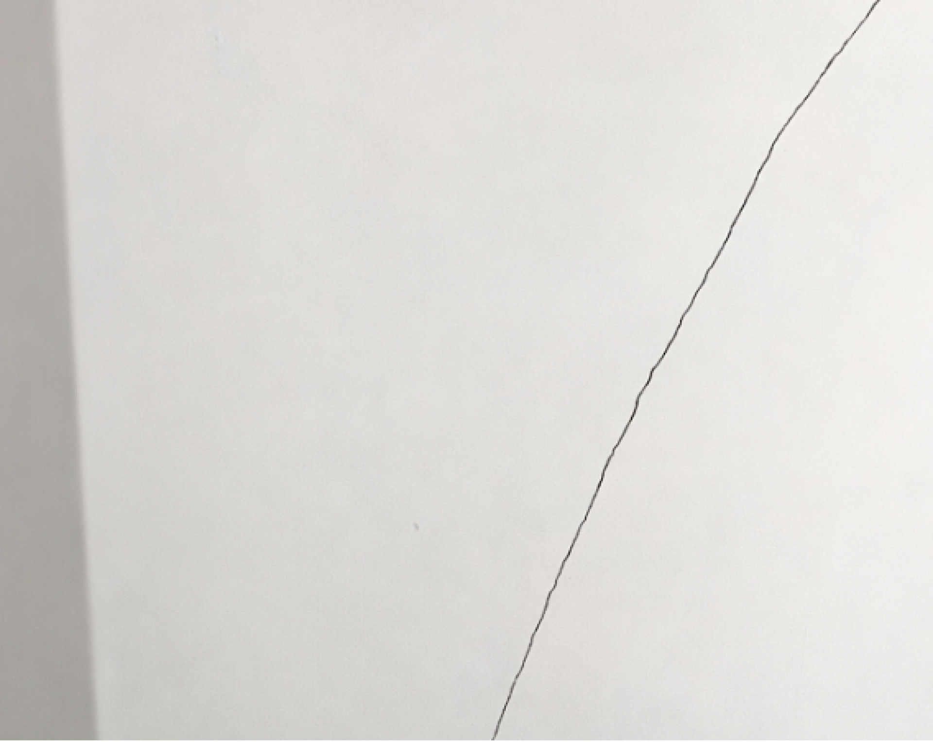 • รอยร้าวเฉียง 45 องศาที่มุมวงกบ: เกิดจากการไม่ได้เสาเอ็นหรือคานทับหลัง (Lintel) ที่แข็งแรงพอ ทำให้ผนังไม่สามารถรับน้ำหนักกดทับจากด้านบนได้