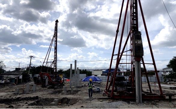 • อาคารสูงหรืออาคารขนาดใหญ่: ต้องใช้ เสาเข็มเจาะระบบเปียก หรือ Spun Pile ขนาดใหญ่ตามการคำนวณของวิศวกรโครงสร้าง